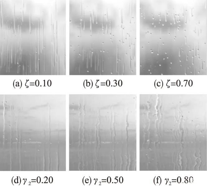 在未來工作中,將繼續(xù)對(duì)玻璃窗上水滴的運(yùn)動(dòng)控制進(jìn)行研究,包括玻璃窗表面粗糙度對(duì)水滴尾部褪色的影響,玻璃窗平移或旋轉(zhuǎn)對(duì)水滴運(yùn)動(dòng)行為的影響等,完善水滴運(yùn)動(dòng)細(xì)節(jié),進(jìn)一步在流固界面動(dòng)力學(xué)模擬方面做有益探索。