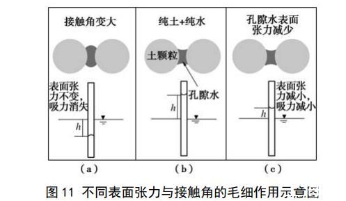 圖11不同表面張力與接觸角的毛細(xì)作用示意圖
