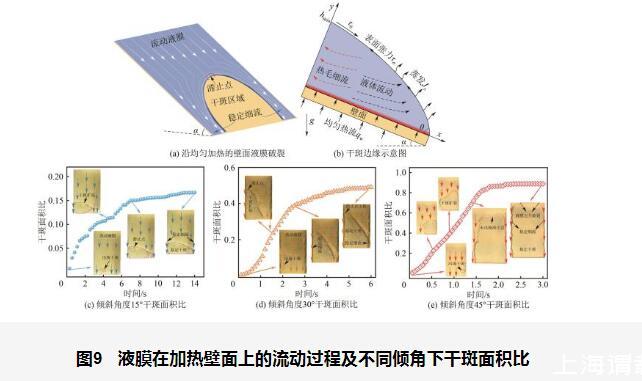 圖9液膜在加熱壁面上的流動(dòng)過(guò)程及不同傾角下干斑面積比