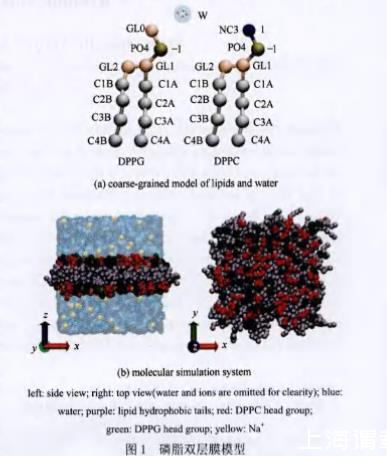 本文利用粗?;肿觿?dòng)力學(xué)模擬方法,考察表面張力強(qiáng)度為80×10?5N·cm?1條件下磷脂膜的破裂過(guò)程。通過(guò)建立磷脂膜破裂臨界時(shí)間和臨界表面張力值的分析方法,采用電中性的二棕櫚酰磷脂酰膽堿(dipalmitoyl phosphatidylcholine,DPPC)和帶負(fù)電的二棕櫚酰磷脂酰甘油(dipalmitoyl phosphoglycerol,DPPG)作為磷脂膜組分,考察表面張力施加速率以及磷脂膜組成對(duì)磷脂膜破裂行為的影響規(guī)律。進(jìn)一步地,提出“動(dòng)態(tài)”微觀對(duì)抗理論以描述磷脂膜破裂過(guò)程的動(dòng)力學(xué),旨在為磷脂膜和磷脂膜元件的設(shè)計(jì)及其應(yīng)用提供理論指導(dǎo)。