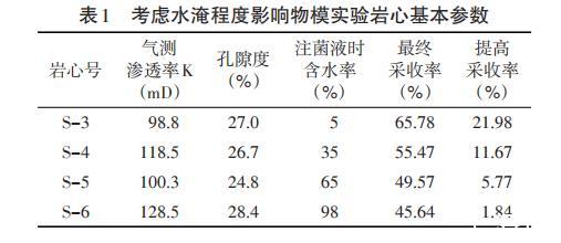 2.3.2評(píng)價(jià)含水率對(duì)微生物驅(qū)油的影響