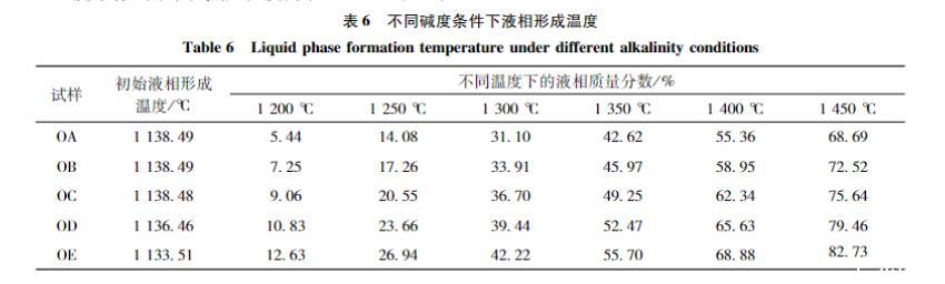 圖1不同堿度條件下液相生成量與溫度的關(guān)系