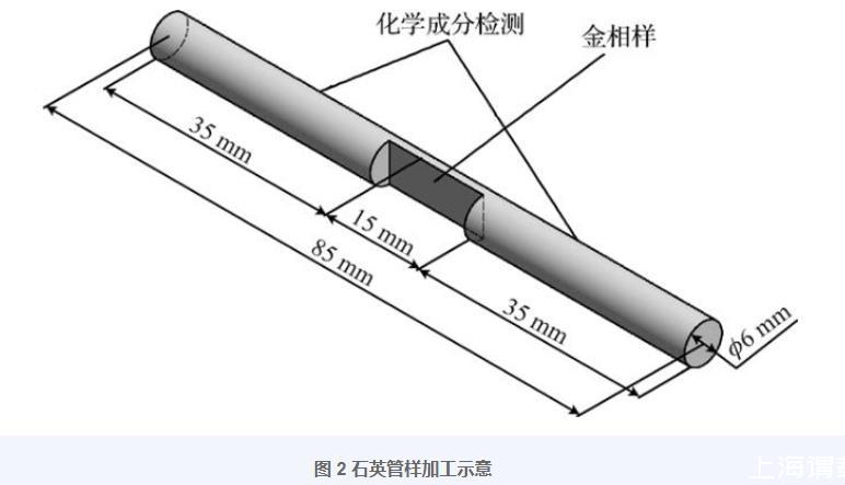 每個(gè)石英管樣長(zhǎng)度約為85 mm,直徑約為6 mm,試樣加工如圖2所示。取中間位置制備金相樣;取兩頭中光潔度較好、致密度較高的一頭進(jìn)行表面磨光,車取直徑為4 mm的氧氮?dú)怏w棒;最終余料取屑用于分析鋼中剩余主要元素的質(zhì)量分?jǐn)?shù)。金相樣經(jīng)過(guò)線切割、精細(xì)磨拋后,用ASPEX掃描電鏡檢測(cè)試樣,并對(duì)掃描結(jié)果進(jìn)行分析,統(tǒng)計(jì)每個(gè)試樣中氧化物夾雜的數(shù)量密度和平均尺寸。