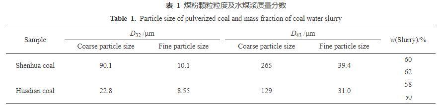 表1煤粉顆粒粒度及水煤漿質(zhì)量分?jǐn)?shù)