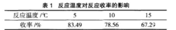 由表1可見,5℃時,反應收率最高,但考慮到5℃以下實驗室現(xiàn)有條件很難達到,因此不再做延伸實驗,選擇最佳反應溫度為5℃。