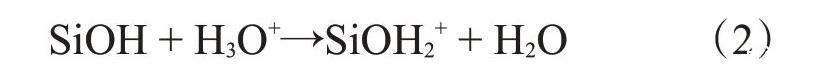 在酸性介質中,納米SiO2表面的羥基會和游離的質子化水發(fā)生如下反應: