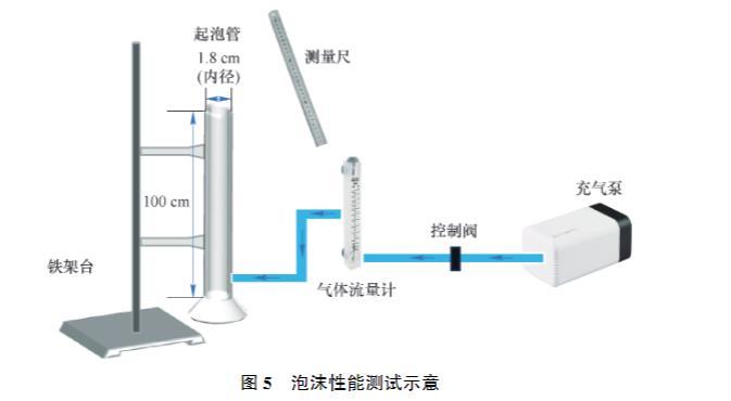 式中,d為泡沫管直徑,cm;H為泡沫層穩(wěn)定后的液面高度,cm;V為生成的泡沫容積,cm3。
