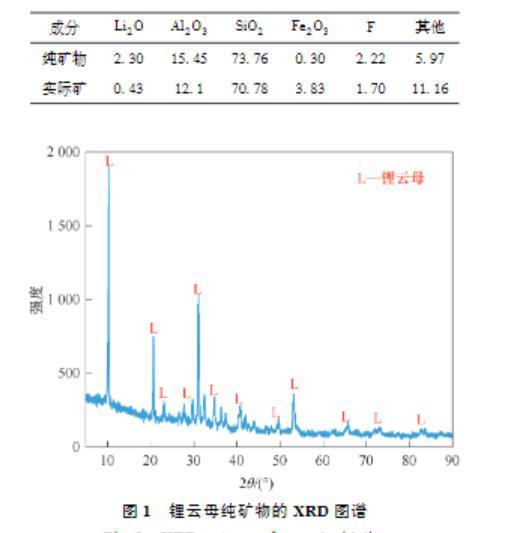 表1鋰云母純礦物及實際礦化學多元素分析結(jié)果