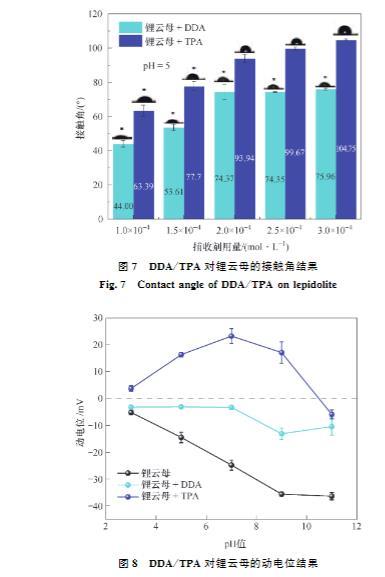 圖7 DDA/TPA對鋰云母的接觸角結(jié)果