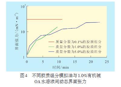 2.4有機堿OA水溶液與膠質(zhì)組分模擬油間動態(tài)界面張力