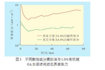 2.5有機堿OA水溶液與瀝青質(zhì)組分模擬油間動態(tài)界面張力