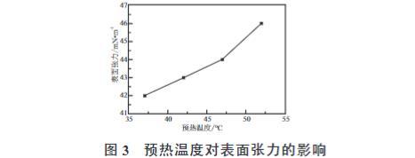 2.4 電暈預(yù)熱溫度對BOPP薄膜表面張力的影響