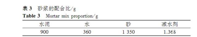 試驗(yàn)采用標(biāo)準(zhǔn)砂,拌合水為自來(lái)水,減水劑采用聚羧酸高性能減水劑,固含量為50%.