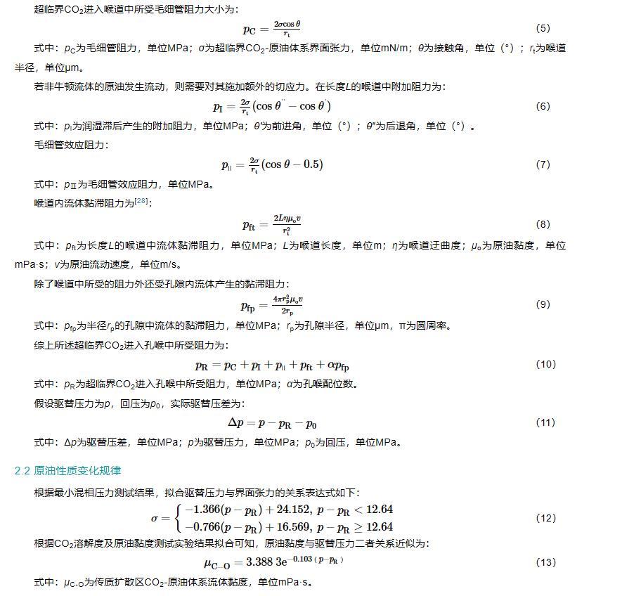 明確巖心孔喉大小及分布,構(gòu)建低滲透油藏CO2驅(qū)開發(fā)全過程動態(tài)預測模型(一)