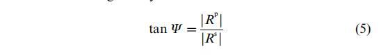 橢偏儀是一種研究表面和薄膜的技術(shù),其基礎(chǔ)是利用偏振光束從界面或薄膜反射或透射時發(fā)生的偏振變換。33在橢偏儀中,測量兩個量J和D, 式中,J是角,其切線是全反射系數(shù)大小的比率,由下式給出: