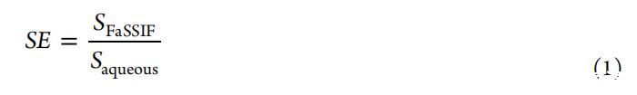溶解度增強(qiáng)SE計(jì)算為在FaSSIF和水性緩沖液中測(cè)得的溶解度比率(等式1):