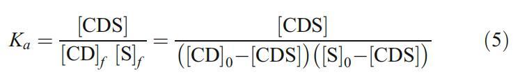Ka通過(guò)將等式6與[CDS]與[CD]0的實(shí)驗(yàn)數(shù)據(jù)擬合而確定。在式6中,CD0和S0分別為總環(huán)糊精和總表面活性劑濃度。