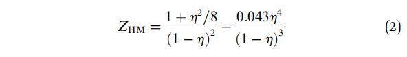 式中,η是表面堆積分?jǐn)?shù),它可以用顆粒數(shù)密度(p)和單個顆粒的體積直徑(d)表示為η=(π/4)pd2。對于我們的實驗,η介于0和0.91之間。ZHM的相應(yīng)值介于1和96之間。