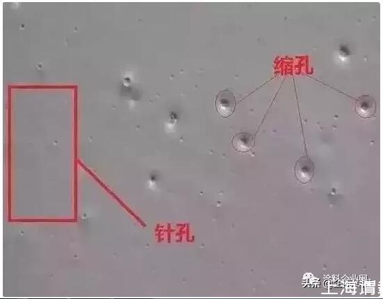 針孔是因氣體(空氣或反應(yīng)產(chǎn)生的氣體等)排出產(chǎn)生的,而縮孔而是因潤(rùn)濕不良產(chǎn)生,如底材與上涂表面張力差距過小,或底材受污染,也有的是上涂漆中受消光劑或綞紋劑等污染而產(chǎn)生——這類一般在涂膜中呈均勻分布,在何時(shí)何地出現(xiàn)也沒有規(guī)律可尋,且形狀是很小的點(diǎn)狀縮孔。