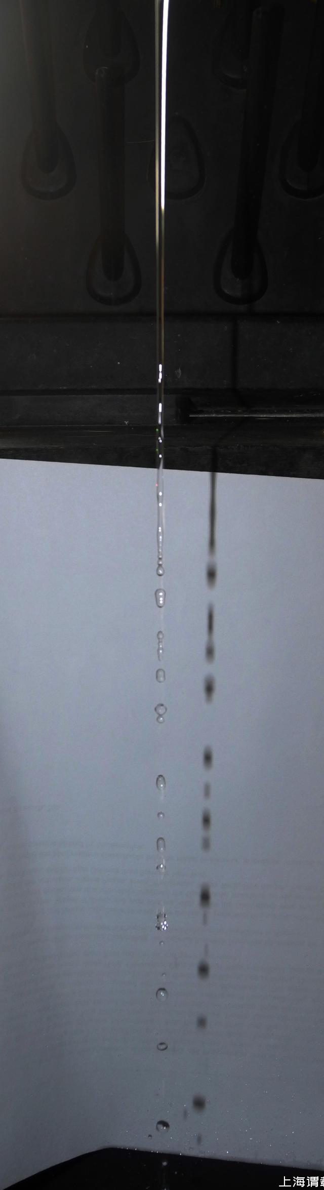 定量的結(jié)論是,波長(zhǎng)大于柱徑的擾動(dòng)會(huì)不斷放大,導(dǎo)致柱面斷裂。不僅長(zhǎng)泡泡容易斷開(kāi),原本連續(xù)的細(xì)水流在下落中也很容易在擾動(dòng)之下斷裂,形成一系列小水滴。有很多人研究這個(gè)現(xiàn)象,不過(guò)不是為了吹泡泡,而是為了設(shè)計(jì)噴墨打印機(jī)。