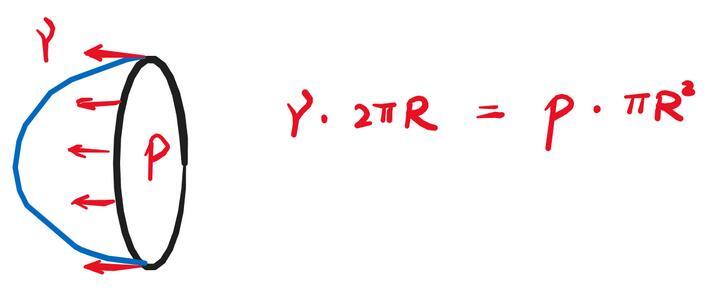 這就是標(biāo)準(zhǔn)的球曲面下,壓強與表面張力的關(guān)系。