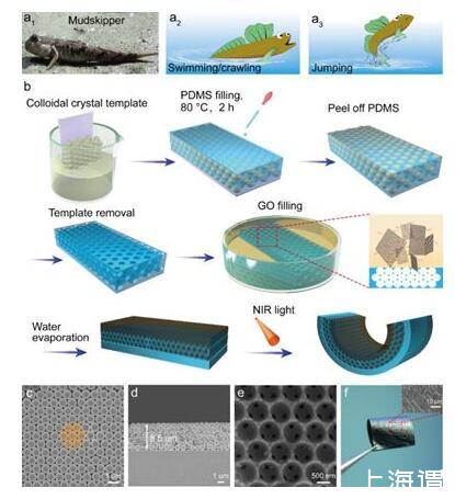 彈涂魚具有陸地爬行、水中游泳、泥中跳躍的獨特特征,是一種具有多場景適應能力和多功能驅(qū)動行為的魚類。受彈涂魚啟發(fā),中國科學院蘭州化學物理研究所固體潤滑國家重點實驗室表面與界面研究團隊開發(fā)了一種能對各種環(huán)境做出響應的智能光驅(qū)動器。