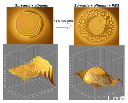 值得注意的結(jié)果是,兩種親水性聚合物葡聚糖和PEG 10000在BSA存在下恢復(fù)ESPs表面性能的效率不同:葡聚糖對(duì)Curosurf更有效,PEG 10000-對(duì)Survanta更有效。這表明HP的影響不僅可以用正滲透壓來解釋,還可能與聚合物對(duì)本體表面活性劑聚集體結(jié)構(gòu)的不同影響有關(guān)(4)。