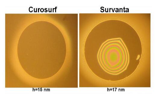白蛋白抑制外源表面活性劑制劑在空氣/水界面的表面活性。當(dāng)BSA出現(xiàn)在膜液相中時(shí),Curosurf和Survanta都失去了在單層中保持低最小表面張力和形成黑色泡沫膜的能力。