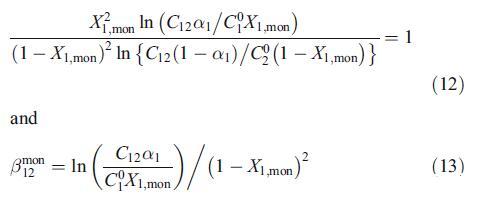 混合膠束規(guī)則溶液理論可以推廣到混合單層。為了評(píng)估混合單分子層中的相互作用參數(shù)bmon 12,可以在恒定γ值下推導(dǎo)出混合膠束的類似方程,如下[24,25]: