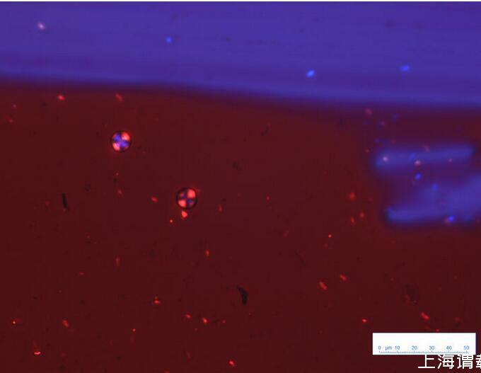 紅色的部分為墨水殘余物的涂片,藍(lán)紫色是載玻片本身在偏光鏡下的顏色。圖中可以看到兩個(gè)標(biāo)準(zhǔn)的馬耳他十字,基本上能夠驗(yàn)證“sheen是結(jié)晶導(dǎo)致”這一說法