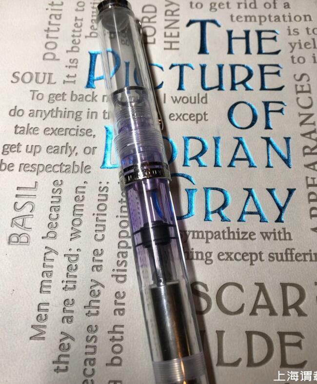 也有一些墨水是你以為洗干凈了,但用著用著還是能從犄角旮旯里蹦出來一些的:比如添加了金粉銀粉的,附著力特別強(qiáng)的(直接滲進(jìn)了樹脂的墨囊中)。如果不信邪的話可以考慮拿一支示范筆,洗不洗得掉就一目了然了——當(dāng)然也有一定的風(fēng)險(xiǎn),見下圖: