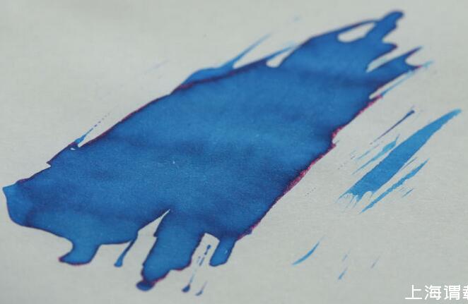 萬寶龍的寶馬藍(lán)這款是我日常使用最多的,它在邊緣干透后會(huì)有一層金屬色澤的反光,這就是sheen,藍(lán)色墨水出紫紅色的sheen是相對(duì)比較常見的