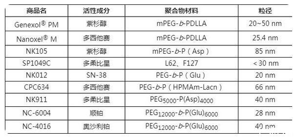 納米級(jí)的聚合物膠束具有一定的長(zhǎng)循環(huán)性質(zhì),并可通過增強(qiáng)滲透滯留效應(yīng)(Enhanced Permeability and Retention,EPR)被動(dòng)靶向于腫瘤部位,也可對(duì)表面進(jìn)行修飾達(dá)到主動(dòng)靶向的目的。目前已有幾款產(chǎn)品在部分地區(qū)上市,例如韓國(guó)Samyang公司開發(fā)的紫杉醇聚合物膠束Genexol PM于2007年在韓國(guó)獲批用于治療非小細(xì)胞肺癌、轉(zhuǎn)移性乳腺癌和卵巢癌,之后又在印度、塞爾維亞、菲律賓和越南上市,目前正在美國(guó)進(jìn)行相關(guān)臨床研究;另一款紫杉醇聚合物膠束Paclical是由瑞典Oasmia公司開發(fā),2015年10月在俄羅斯上市,聯(lián)合卡鉑用于首次復(fù)發(fā)的鉑敏感性上皮性卵巢癌、原發(fā)性腹膜癌、輸卵管癌成人患者的治療。