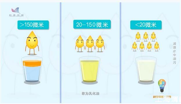 油是怎么存在水中的?油在水中的存在形式,根據(jù)油滴的粒徑,可以分為三類,油滴粒徑大于150微米稱為“浮油”,這也是油進(jìn)入水體的主要存在形式;油滴粒徑在20-150微米之間稱為“分散油”;油滴粒徑小于20微米的稱為“乳化油”。不管是表面活性劑穩(wěn)定的油滴,還是無表面活性劑穩(wěn)定的油滴,極小的乳化油以油包水或水包油的形式懸浮于水中。