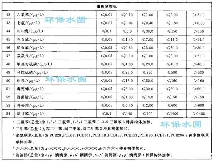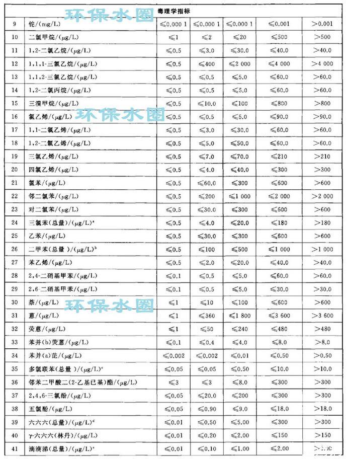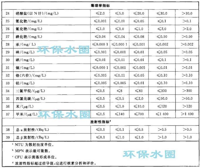 反映地下水質(zhì)量基本狀況的指標(biāo),包括感官性狀及一般化學(xué)指標(biāo)、微生物指標(biāo)、常見(jiàn)毒理學(xué)指標(biāo)和放射性指標(biāo)。