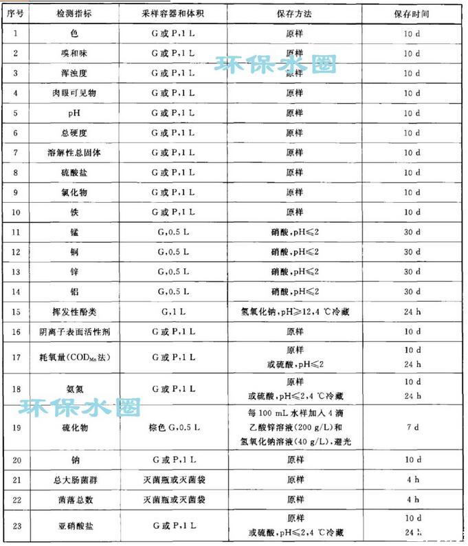 地下水樣品的保存和送檢要求見(jiàn)表A.1