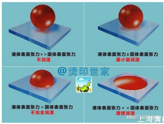 如果壓力足夠了,溫度也足夠了,但還是燙不上,可能問題出在膠粘層與承印物之間的配合上,也就是電化鋁的膠粘層與承印物表面的親和力出了問題。從本質(zhì)上說,電化鋁轉(zhuǎn)移到承印物上的過程是一個粘接的過程,當然這是一個需要加熱粘接的過程,所以我們跳出燙金小圈子,先來看看膠水粘接的機理。