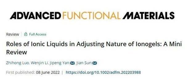 北京理工大學生命學院綠色生物制造課題組在國際頂級期刊《Advanced Functional Materials》(影響因子18.808)發(fā)表題為《Roles of Ionic Liquids in Adjusting Nature of Ionogels:A Mini Review》的綜述,文章綜述了離子液體在調(diào)控離子凝膠的結構和性能方面發(fā)揮的作用。該文章通訊作者為閻繼鵬副教授和孫劍教授,第一作者為北京理工大學生命學院2020級碩士生羅志鴻。