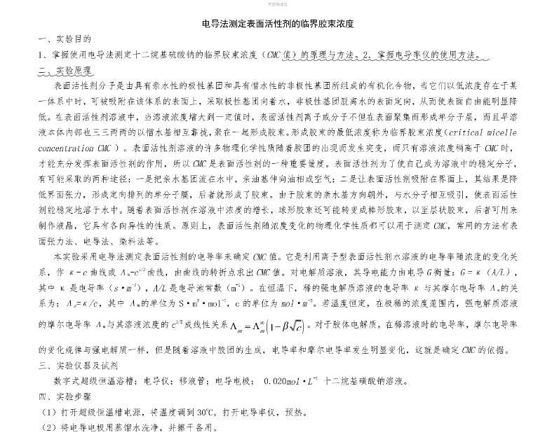 表面張力法和電導(dǎo)法對比測定表面活性劑臨界膠束濃度