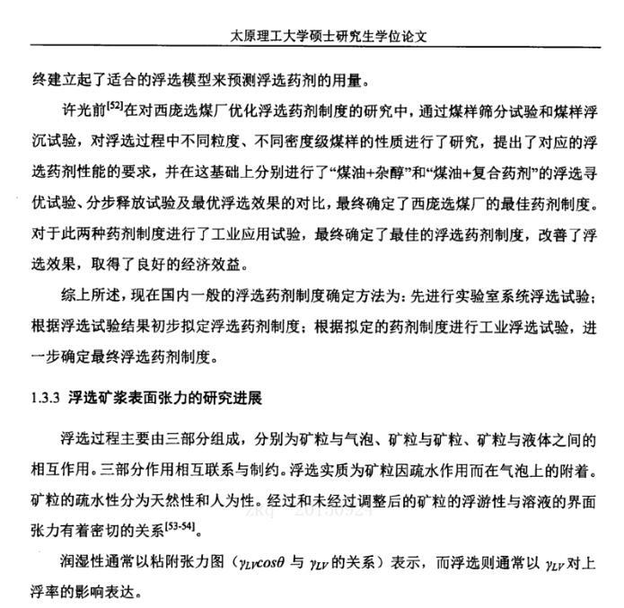 【摘要】:隨著浮選入料中高灰細泥含量的逐漸增高,浮選效果惡化的問題越來越突出。煤泥浮選是煤炭分選中的重要環(huán)節(jié),合理的浮選藥劑制度是實現(xiàn)煤泥高效浮選的關鍵因素。本文就浮選效果與礦漿表面張力的關系進行了研究,對試驗煤樣進行了工業(yè)分析、元素分析、粒度分析及XRD分析,發(fā)現(xiàn)煤樣中小于0.045mm粒級含量較多,且灰分較高,易泥化。煤樣中含有的伴生礦物種類基本相同,主要包括高嶺土、蒙脫石、石英及黃鐵礦四種。