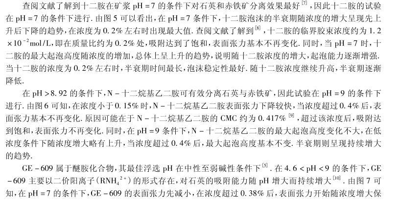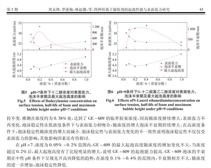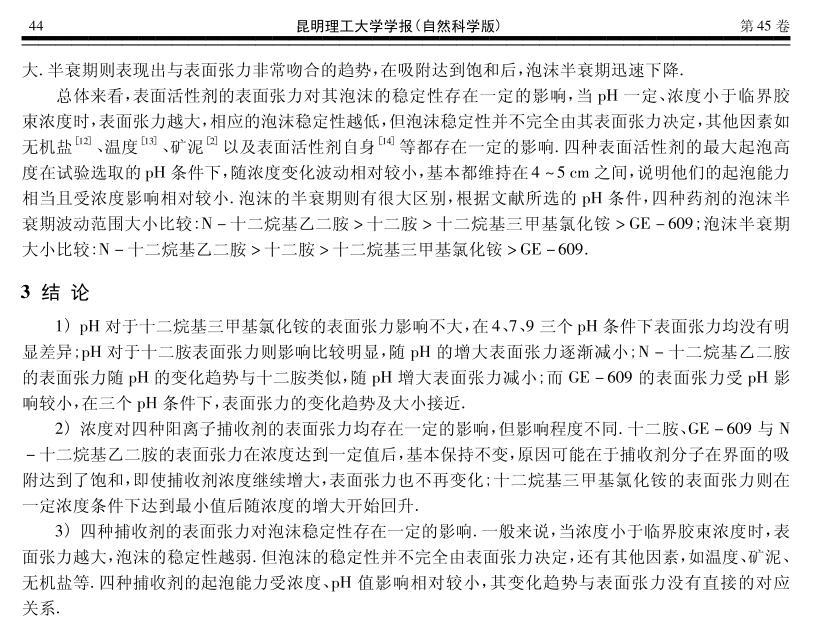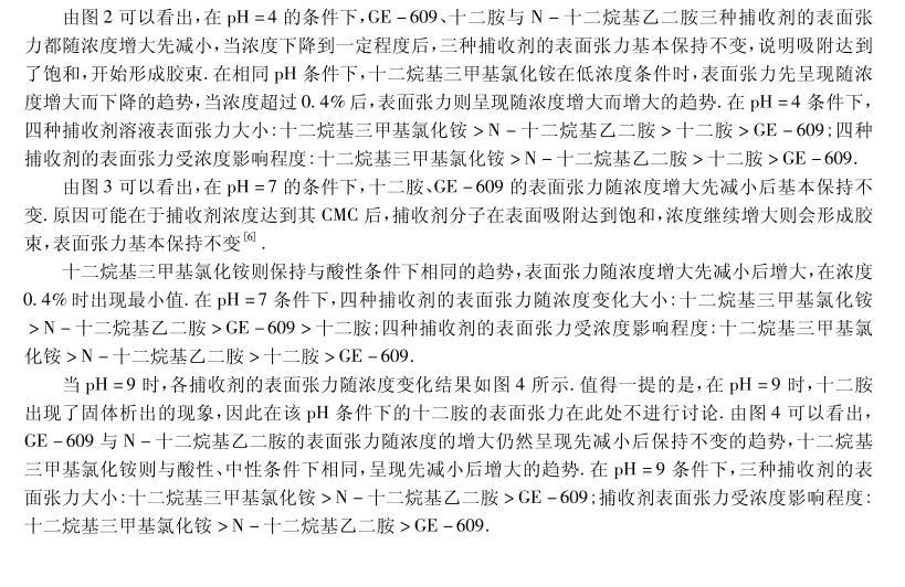 四種陽離子捕收劑的起泡性能與表面張力研究