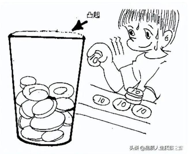 表面張力的實驗:這個實驗,也可以說是一個關于表面張力的小游戲。先找一個朋友和你一起來進行這個游戲,然后準備一杯水(把水加到杯子的邊緣處,目視水至杯口齊平處),16枚1元的硬幣(也可以更多)。然后是這個游戲的規(guī)則,和朋友每人一次向杯子里輪流投放硬幣,每次投放硬幣數(shù)沒有限制,可以一次放進1枚,可以2或3枚,或者更多,直到誰先把水溢出杯子為止。投放硬幣的時候用拇指和食指捏住硬幣輕輕的放進盛滿水的杯子。本人最多一次投放了16枚1元硬幣。呵呵,好的大家去試試吧。