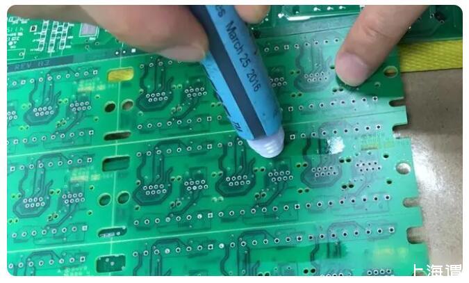 測量PCB表面的張力主要是通過便攜式的測試筆,里面含有特定的張力測試液體,像是通常我們使用的大頭油性筆似的,測試時只要輕輕在需要測試的表面畫一條直線,待2-3秒鐘過后,觀察畫的直線是否附著均勻,沒有收縮成水珠狀,說明達到了該測試筆設定的張力,張力的單位為達因/厘米(dyne/cm),有時又稱測試筆為達因筆。具體測試筆品牌這里就不給做廣告了,這個測試在市面上也很容易買到。測試的方法也比較簡單,為了確定張力的范圍,一般必須準備至少2只測試,一般測試的張力區(qū)間在+/-2達因/厘米之間。