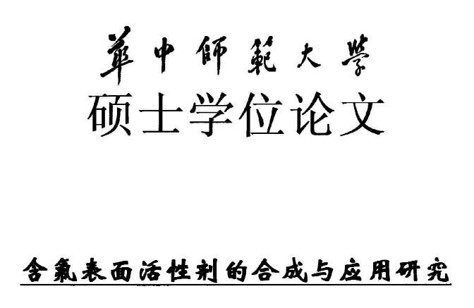 第二章以全氟己基磺酰氟和全氟丁基磺酰氟為原料,合成了一系列陰離子型含氟表面活性劑,用IR、MS、1HNMR等鑒定了所合成化合物的結(jié)構(gòu),研究了產(chǎn)物的表面張力,同時確定了臨界膠束濃度(CMC)。