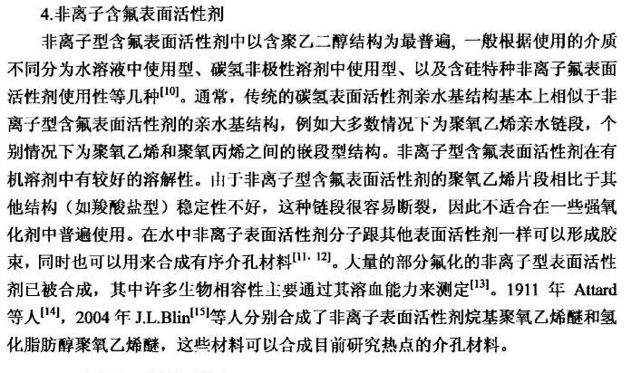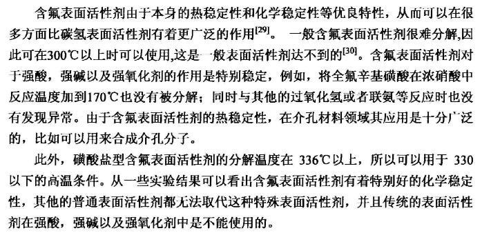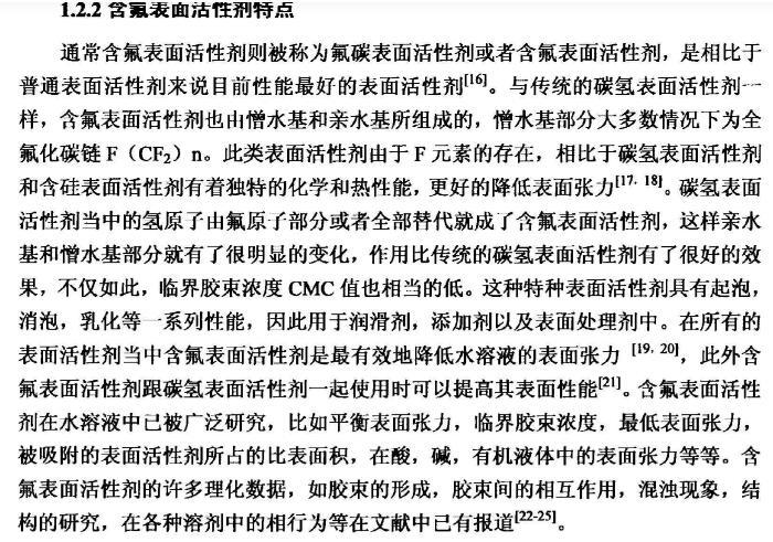 【摘要】:本論文首先對新型含氟表面活性劑的特性,應(yīng)用領(lǐng)域,國內(nèi)外研究進(jìn)展進(jìn)行了全面的綜述。含氟表面活性劑是目前最受青睞的特種表面活性劑,相比于傳統(tǒng)的碳?xì)浔砻婊钚詣砻婊钚詣┑挠昧可?,降低水溶液表面張力的作用?qiáng),同時可以跟其它表面活性劑起到很好的復(fù)配效果,可以應(yīng)用于消防、鉻霧抑制劑、造紙、冶金、起泡與消泡劑的合成等很多領(lǐng)域。