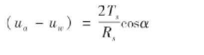 式中,(ua-uw)為基質(zhì)吸力,Pa;Ts為水—?dú)夥纸缑娴谋砻鎻埩Γ琋 m-1;Rs為曲率半徑,m;α為接觸角,°。
