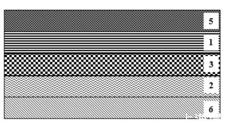 將本實施例的BOPP薄膜用于制備熱復(fù)合基材,通過熱復(fù)合功能層與共聚丙烯材料或/和聚乙烯材料復(fù)合,具體地,本實施例是與石頭紙蜂窩板5熱復(fù)合,復(fù)合后的結(jié)構(gòu)請參閱圖3,復(fù)合完成后,測試復(fù)合效果。復(fù)合方法包括以下步驟:首先在BOPP薄膜的可印刷表層上直接進(jìn)行耐溫油墨印刷,其中最后一道為耐溫保護(hù)光油,形成油墨層6,然后輕度熱壓使薄膜與表面達(dá)到一定溫度的石頭紙蜂窩板直接熱壓復(fù)合,熱復(fù)合工藝條件如下:溫度為130℃,封合時間為2s,熱壓壓力為8kg/cm2